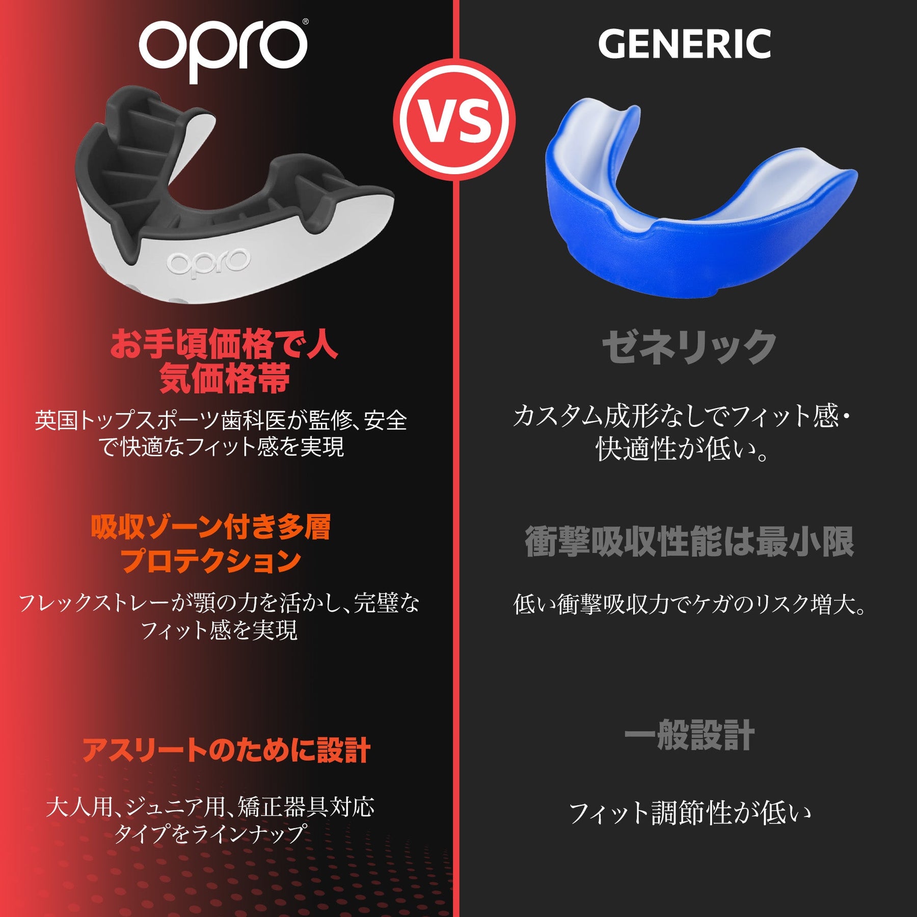 安全、安心、優れた装着感のマウスガードを提供。ラグビー、ホッケー、MMA、ボクシング、アメリカンフットボールなど、すべてのコンタクトスポーツに適しています。使いやすいシングル・コンプレッション・ケージと伝統的なフィンテクノロジーを採用し、あなたの歯と歯ぐきに正確にフィットします。耐衝撃性を持つ2レイヤー構造のマウスガードで、あなたの笑顔を守ります。どんなスポーツでも、どんなスタイルでも。さぁ、OPROであなたの笑顔をアピールしよう!
